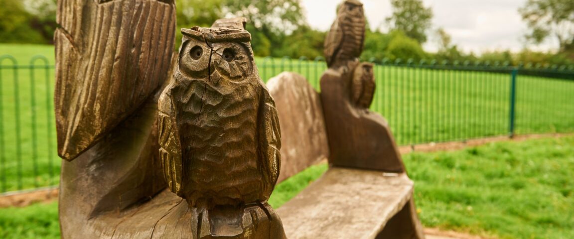 A well presented recreation ground with open areas of grassland, picnic area, a large childrens play area, outdoor gym and woodland